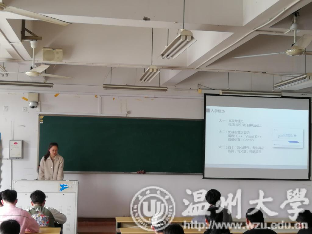 交流会伊始,龚玲艳同学进行自己老员工活及学习的分享。她以真实的经历,告诉大家如何将老员工活过得更有意义、更充实,并推荐给大家一些实用的学习英语书籍与软件。她以自己寒假背完3000个单词为例,与大家分享了如何合理利用时间背单词的诀窍。作为一名发表的3篇SCI论文的学姐,她当然也和大家分享了如何写出一篇好论文,这当中少不了她不屑的努力和精益求精的耐心与专业精神。同学们听完讲座都受益匪浅,还向学姐咨询学习上的一些问题,进行积极地交流。