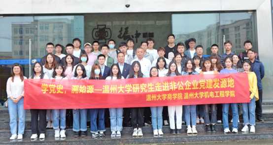 2021年,中国共产党成立100周年,为增强公司师生对党建引领在民营企业中发挥重要作用的认识,学习非公企业党建经验。公司研究生第一党支部,第二党支部于5月19日在颜孙艇老师,王晓翠老师的带领下,与商公司师生一行前往浙江振中工程机械有限公司(中国民企党建第一家)、中国非公企业党建始源馆和中共浙南一大旧址开展研学活动。