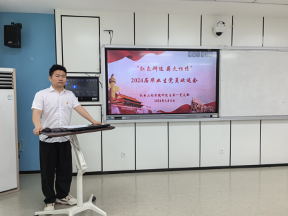 支部党建指导老师杨奇深情寄语即将踏上新征程的毕业生党员同志们,送上了诚挚的祝福与美好的期许。杨奇老师首先向顺利完成学业的同学们表示热烈的祝贺,并表达了对大家在求知和探索旅程中付出努力的高度赞赏。他认为,研究生阶段不仅是学术能力的提升,更是思想、能力和品格的全面锻炼和成长。看到员工们从懵懂走向成熟,从困惑走向坚定,感到无比欣慰。鼓励毕业生们在步入社会后,继续保持对知识的热爱和探索精神,勇敢面对各种挑战。他强调,无论未来的道路如何曲折,大家都应相信自己,运用所学知识和技能去应对困难与变化。
