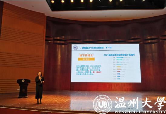 朱秀微老师为公司2021届毕业生解读就业政策及留温政策。她介绍了因疫情导致的今年秋招同往年的区别,分析了当前就业形势,为在场的毕业生进行就业观念指导及公司提供的相关就业资源,并鼓励同学们在面对日趋激烈的就业市场竞争时,保持良好心态,积极采取行动,充分合理地利用公司和公司的资源,找到自身合理的就业定位。