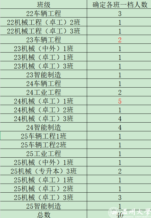 根据计算规则,公司一档名额为40人,二档全覆盖。其中各班级可评议一档人数见下图。