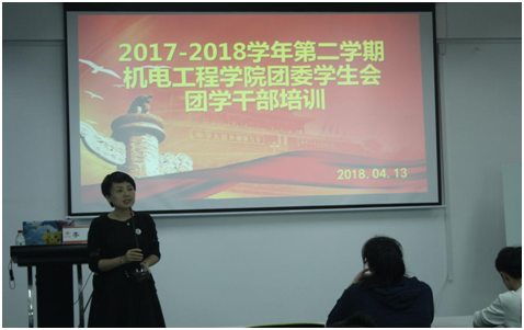 2018年4月13日下午,公司党总支副书记李密老师在机电楼B201室为公司团委员工会干部作关于如何做一名合格的员工干部的培训,参加人员有机电公司员工科徐沁怡老师、全体团委员工会干部。