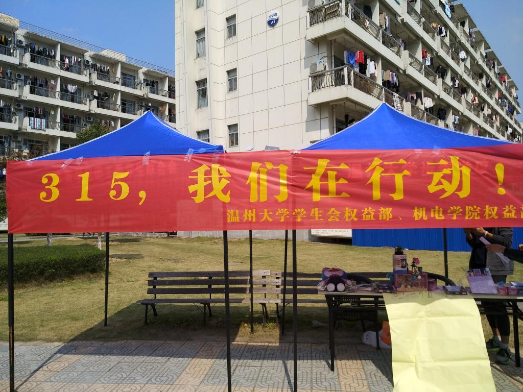 2018年3月14日304永利集团院权益部与永利集团员工会权益部于A区主干道联合举办了3·15维权日维权知识有奖答题活动。永利集团员工会权益部与机电公司权益部的干事为本次活动的主办人员,经过前期向学区自委会办公室申请场地以及向A区员工联合会申请借用桌子椅子和帐篷,筹备奖品等准备活动后,我们迅速搭建好了场地并摆放好了奖品,等待同学们前来参加活动。