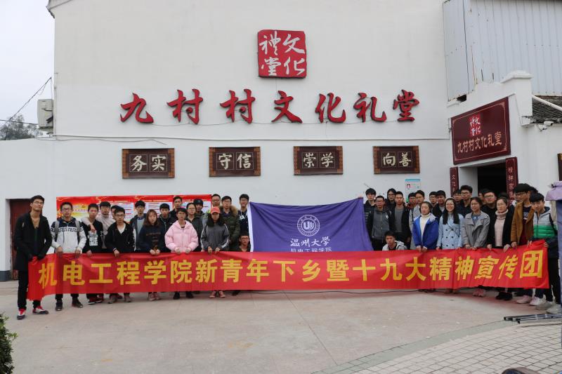 在九村村书记的引导下,全体成员自主分为三组:第一组负责整理九村村委会红色书屋,第二组负责张贴海报,及给村民们分发有关十九大相关关键词的宣传单,宣传十九大精神,第三组则留在教育基地,准备包饺子,并送予附近的村民,传递温暖,同时也进行发放十九有关宣传单的活动。最后,全体成员将亲手包好的饺子送给九村文化礼堂中的老人们,他们表达了对我们的谢意。最后,全体成员在礼堂前进行了合影留念,宣告本次志愿者活动的圆满结束。