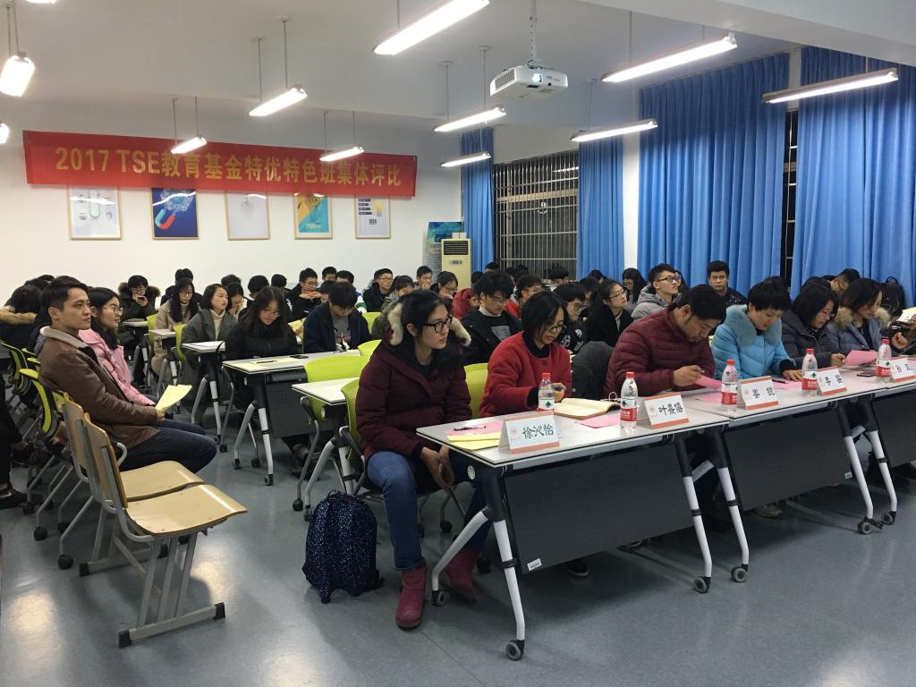 据悉,“TSE”教育基金由宁波兴茂电子科技有限公司出资设立,特别设置了特优班集体和特色班集体奖项。特优特色班集体评比涉及学风建设、员工团建、科技竞赛、创新创业、考级考证、新闻宣传以及考研就业七个特色项目。经过前期各班申报、年级委员会初评和公司审核筛选,本次评比大会总共有12个班级入围评选,其中特优班集体候选6名,特色班集体候选6名。经过评比大会上教师评委和员工评委投票,最终评选出14工业工程、15机械1班、16机械1班3名特色班集体和15机械国际化等8名特优班集体。