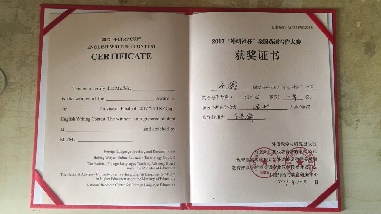 英语是国际指定的官方语言,也是世界上最广泛的第一语言。为助推永利集团“十三五”国际化发展这一重要战略目标的实现,提高英语能力是不可小视的重要组成。作为永利集团第一批国际化专业,公司的机械工程(国际化)专业在人才培养方面尤其注重员工的外语水平发展,鼓励员工在扎实专业基础的同时,不断提高外语水平,成为真正的国际化人才。2017年10月21日,2017年“外研社杯”全国英语写作和阅读大赛在浙江大学紫金港校区举行。公司2015级机械工程(国际化)专业的乔鑫获得写作大赛一等奖,是该项大赛中唯一一位非英语专业的获奖选手。此次获奖离不开乔鑫平时的认真努力以及赛前的刻苦训练,也体现了公司在国际化专业建设中语言能力培养方面的成果。