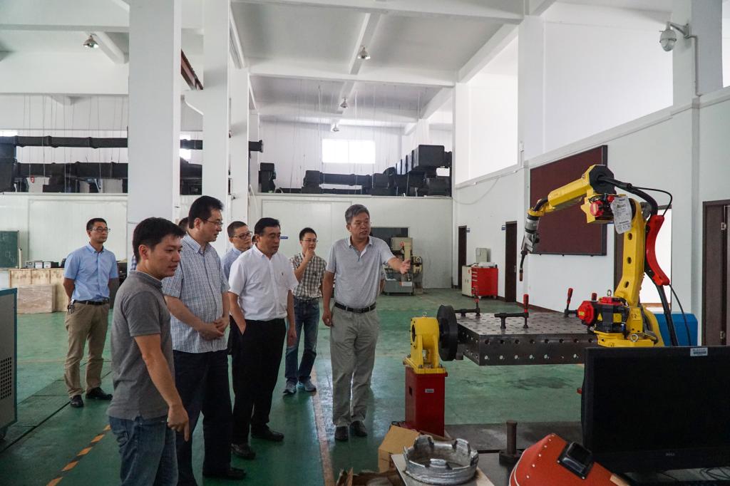 10月11日,省科技厅副厅长王坚一行莅临304永利集团调研激光加工机器人国家级国际科技合作基地。温州市科技局副局长朱勇敏陪同调研。