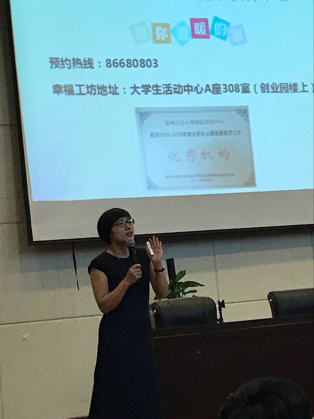在杨奇老师和孙双老师的演讲结束后,张丽艳老师带来了她的心理健康讲座。 张丽艳是国家二级心理咨询师,她在开讲前提出的几个问题,例如“高中和大学的区别”和“温州和家乡的不同”很快地活跃了现场的气氛。随后,她给我们讲述了大学中的压力、压力的来源、压力造成的心理影响和如何面对心理问题。她强调,有心理问题并不是一件羞耻的事情,勇敢者要敢于求助。她同时也列举出了公司可以为员工提供的各种心理帮助的服务。听完张老师的讲座,很多同学都感到了轻松和释然,也认识到了老员工心里健康的重要性。只有心理健康了,才能游刃有余地驾驭健康积极向上的学习和生活。
