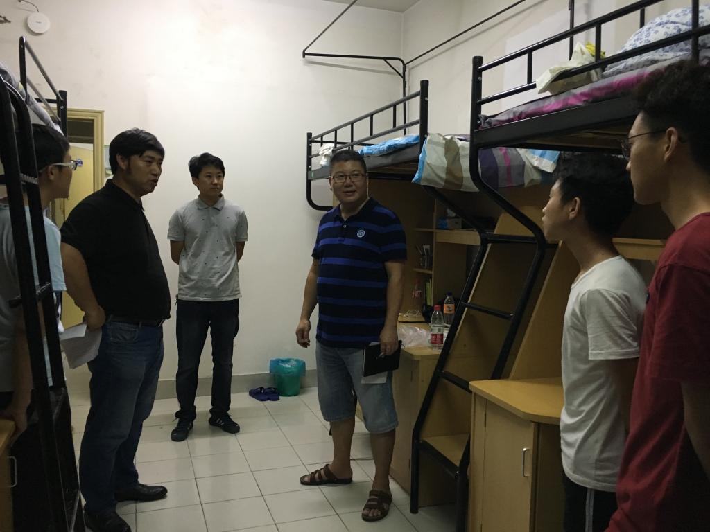 9月19日晚6:00,在公司党总支书记周荣、经理周宏明、副经理冯爱新、副书记李密、副经理姜锐的带领下,304永利集团各专业老师、新生班主任、寝室导师及班主任助理到寝室看望2017级全体新生本科生及研究生。