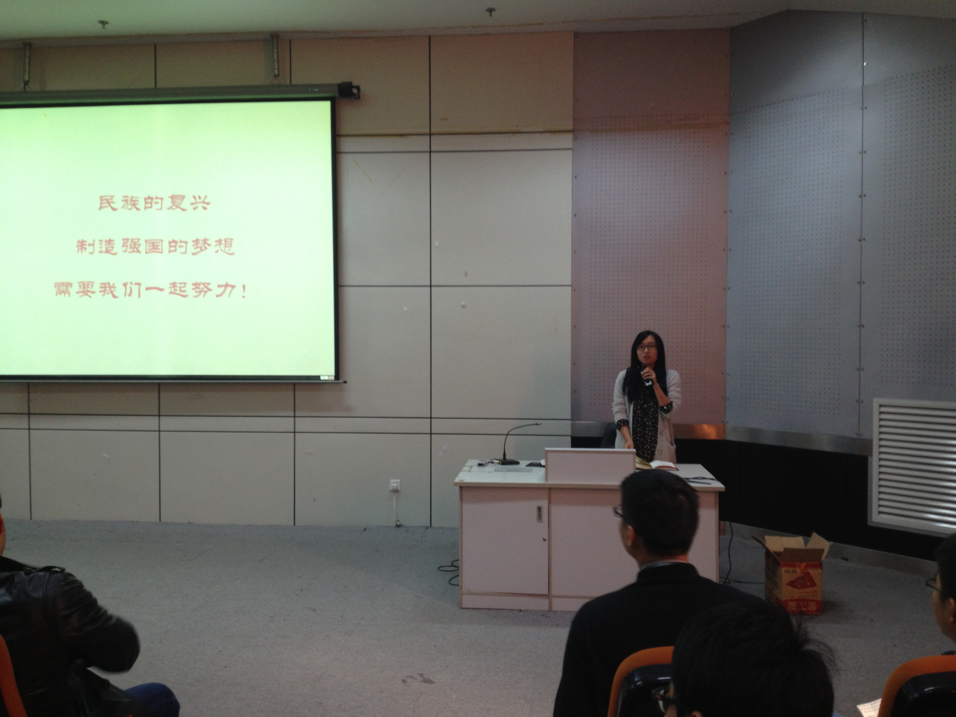 在观看中央电视台记录新中国工业崛起的长歌史诗《大国重器》视频片段后,周宏明经理分析了制造业发展、现状和就业前景,强调公司各专业毕业生具有宽领域工程技术适应性,就业面很广,就业率高。他同时介绍了机电公司的整体团队力量、教学科研水平以及在人才培养中的取得的成果,并对各个专业进行了精简的概括。制造业发展状况就业12机自张菲、10工业工程徐海洋和邵瑞阳、11汽服管倩倩同学分别以视频、PPT等生动活泼的形式,主持了各专业宣讲活动,同时,他们作为学长代表,就各自所学专业,向学弟、学妹们进行了学习交流。已在奔驰公司实习的大四汽服专业罗成立学长为大家带来真实的职场经历分享,让大家对专业知识技能与工作的关系有了更深层次的认知。