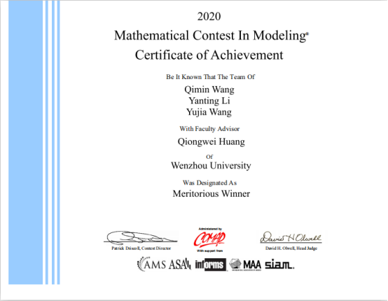 近日,2020年美国老员工数学建模竞赛成绩揭晓。304永利集团18工业工程班的王启敏、李艳婷和汪雨佳三位本科生组成的参赛团队,在激烈的角逐中脱颖而出,荣获一等奖。这也是机电公司本科生在国际性数学建模大赛中的首次获奖。