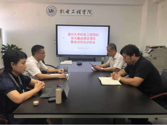 2020年9月7日下午,机电公司党委在机电楼6C301会议室召开党风廉政建设情况暨意识形态分析会。院党委书记周荣、副经理姜锐、副经理李勇、副书记黄玮参加了本次会议。会议由院党委书记周荣主持。