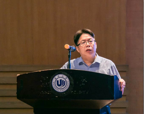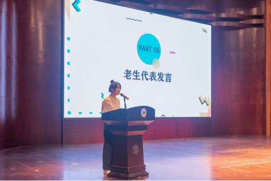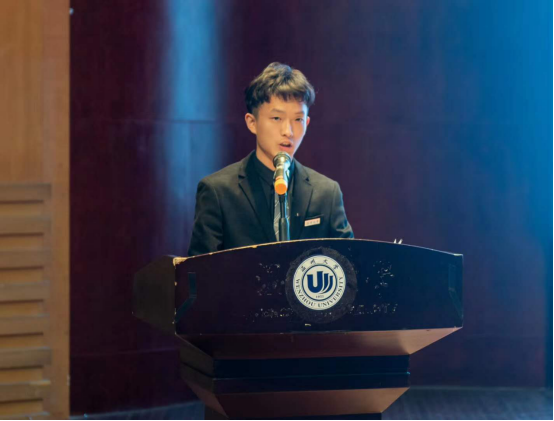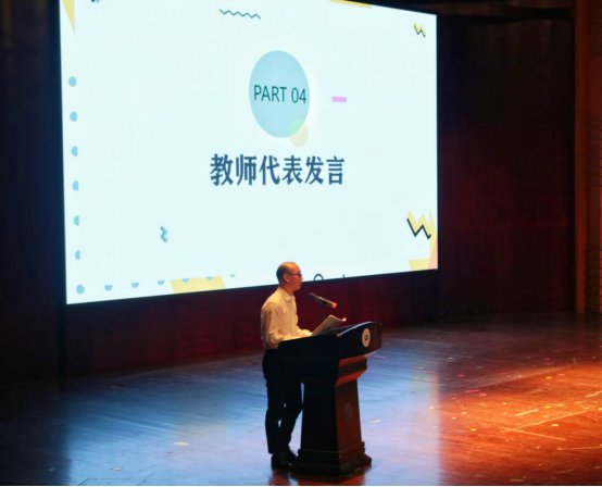 张祥雷老师作为新生班主任代表上台讲话,幽默风趣而不失严谨的讲话风格逗乐全场,并用自己的亲身经历给新生提出几点生活学习建议。