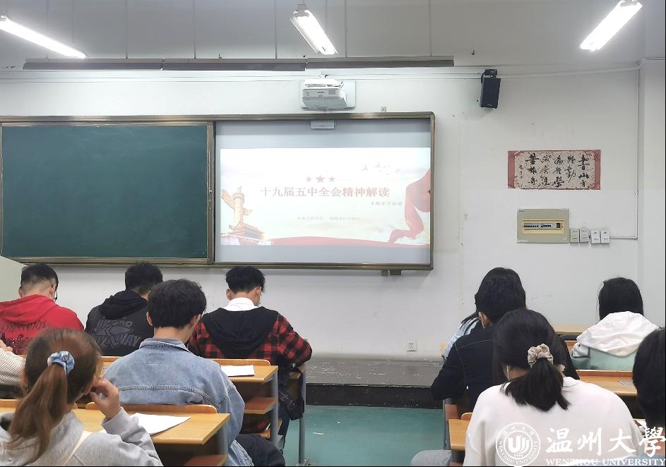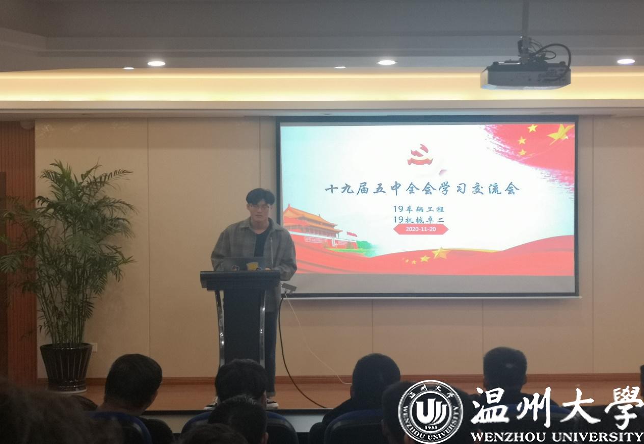 18级工业工程班在团支书刘琪同学的带领下,以十九届五中全会的基本情况、主要议程、公报解读以及十四个关键词为主要内容,对十九届五中全会进行了深度解读。19级工业工程班和19级机械工程卓工一班联合举办了“学习十九届五中全会精神,共筑新时代”团日活动。首先,分小组收集并共同观看视频学习,了解相关知识;进而开展趣味答题环节,调动同学参与积极性,加深对十九届五中全会基础知识的理解。20级机械工程卓工二班、三班则邀请到马克思主义公司潘玉驹老师,向同学们介绍了十九届五中全会的主要内容及思想精神。通过潘老师条理清晰的具体介绍,同学们纷纷表示对全会内容有了更深刻、更专业的认识。