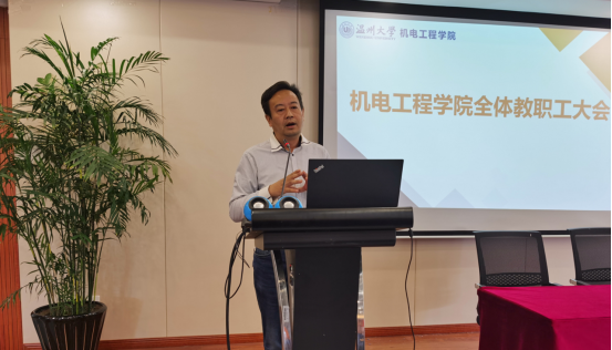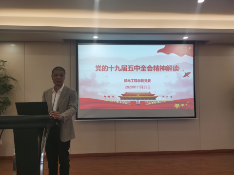 11月25日下午,机电公司党委召开了全院教职工大会,集中学习领会中共十九届五中全会精神,部署公司下一阶段的工作,会议由公司党委书记周荣主持。
