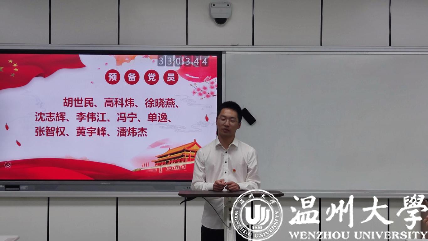 经支部大会讨论决议,一致同意胡世民、高科炜、徐晓燕、沈志辉、李伟江、冯宁、单逸、张智权、黄宇峰和潘炜杰等10位同志转为中共正式党员。党龄自2021年6月18日算起。
