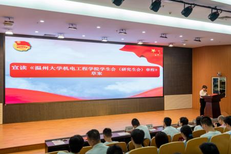宣读人傅镜霏上台宣读《304永利集团员工会(研究生会)章程》草案。