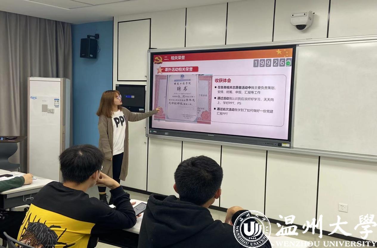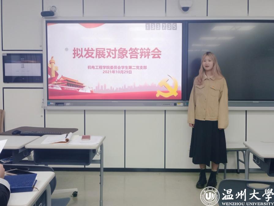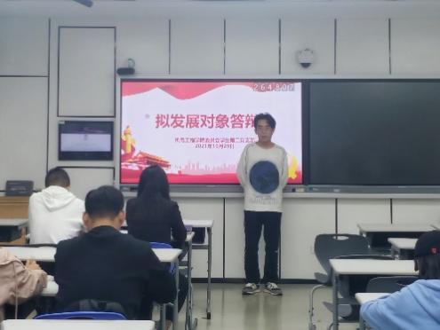 在本次答辩会上,员工第一党支部梁嘉伟、余成玘、林家豪、周洋光、周斌瑞、金鸿斌、徐湘喻、张越洋、周欲欣9位同学参与答辩;员工第二党支部苏智楠、张涛、郭治东、蔡嘉淇4位同学参与答辩;员工第三党支部朱莉、魏淳辉、张德楠、林慧、严潘铃、范雯慧、吴子豪、叶程鹏、王成鑫、陈曹宇、虞远航、曹高涵、戚建波、郏杨昊、王洪群、李佳明、余飞岑17位同学参与答辩。答辩人主要从对党的认识、入党动机、学业水平和参加实践等方面进行汇报。同时,支部党员对候选人进行党史党章,时事政治等的提问。