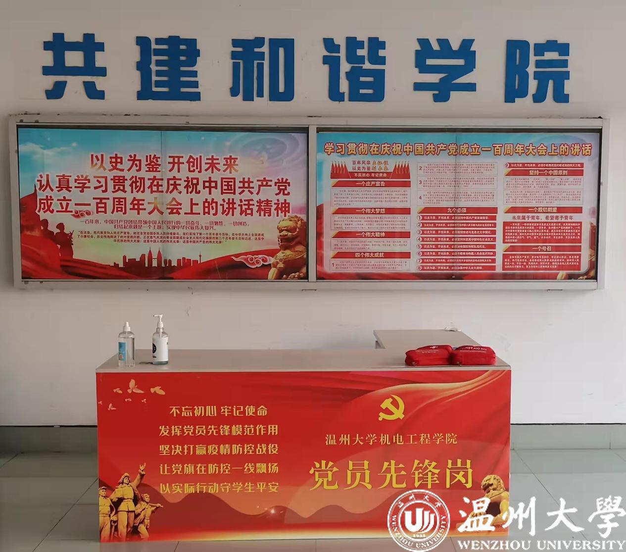 “机电135”抗疫青年志愿服务队于公司一楼大厅设有“党员先锋服务岗”,安排党员同志轮流值班。在此期间,要求他们身穿红马甲,佩戴党员徽章,勇敢亮出党员身份,为广大师生提供便利的同时,更体现作为党员的责任与担当。
