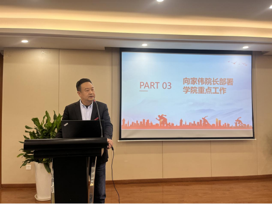 姜锐副经理就分管的专业建设、课程建设、实验室管理、学科竞赛等工作进行部署。李勇副经理对“十大项目”进行介绍,并部署三月份学科工作。黄玮副书记对分管的员工工作、考研及就业等工作进行部署。平阳智能制造研究院副经理陈贤对研究院创新服务综合体专项研发项目进行了介绍。