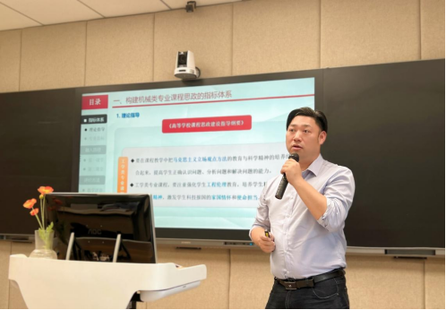 姜锐老师从课程思政的实施背景、实施基本要求、课程思政育人模式等三方面做了题为“机械类专业课程思政实施与评价”的主题发言,全面介绍了公司构建的第一第二课堂联动“知识传授、能力培养、价值引领”三位一体的课程思政育人模式,详细阐述了公司在课程思政融入路径、课程思政教学评价等方面的具体做法,深入解读了构建机械类专业课程思政指标体系的理论逻辑和实践依据,总结了课程思政实施的三大要点:关键在教师、重点在融入、难点在评价。