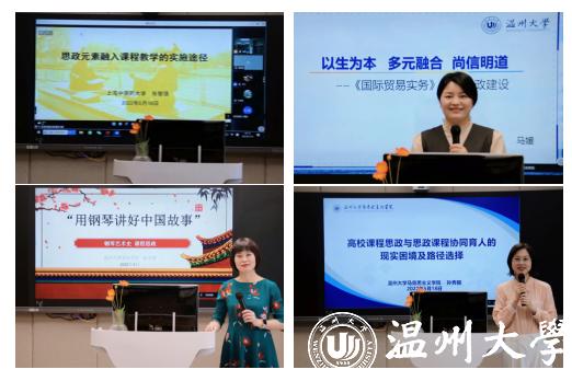 大会上,原上海中医药大学党委书记张智强教授、商公司马媛副教授、音乐公司阮辛怡老师、马克思主义公司孙秀丽副教授也分别作了学术讲思政、深挖课程中思政元素、用钢琴讲好中国故事、推进思政育人协同体系等内容的主题发言。