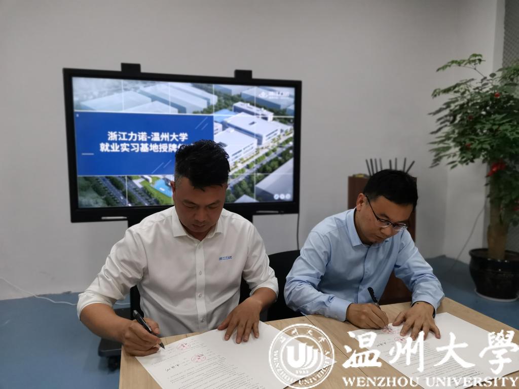 李勇副经理、冯辉彬副总经理代表校企双方签订就业实习合作协议,李勇副经理向浙江力诺流体控制科技股份有限公司授牌,正式在该公司建设“永利集团就业实习基地”。