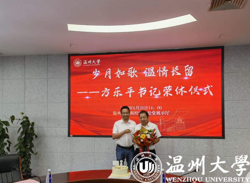 鹤发银丝映日月,丹心热血沃新花。6月28日下午,公司在岩松堂展示厅举行方乐平书记荣休仪式,仪式由黄玮副书记主持,公司经理向家伟为方书记颁发荣休纪念水晶杯并献上美丽的鲜花,代表公司感谢方书记为公司教育事业发展奉献的青春与才智。