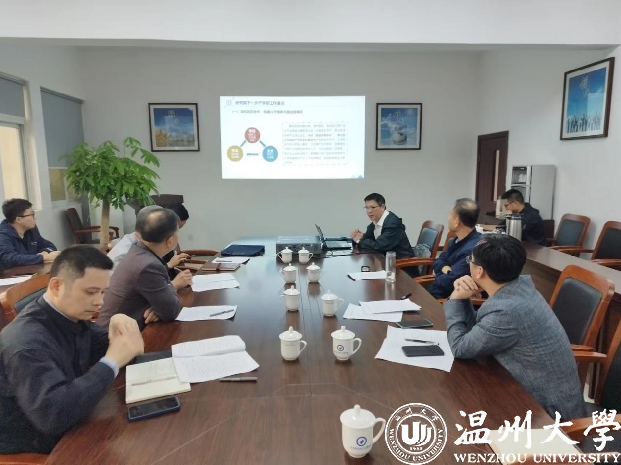 调研座谈会在温大苍南研究院举行,温大苍南研究院张淼经理在会上作了研究院基本情况、成立五年来工作成就及下一步工作计划的汇报。研究院五年来整合组建三支服务团队,累计协助苍南人才办申报5名省千人才和2名国千人才,全球精英引进计划1人,浙江省创新团队1支,为苍南产业引进6名产业咨询专家和3名产业需求技术专家;研究院累计帮助苍南柔性引进各类产业急需各类技术专家和拔尖人才共20名,包括“国家千人”专家朱伟东教授、“国家万人计划”邹军教授等。累计同企业签订横纵向项目(课题)89项,与苍南仪表集团等联合申报国家重点研发计划1项,申报省重点研发项目6项,获批1项,申报温州市重大科技创新攻关项目4项,温州高校科协“产学研”融合项目2项,助力苍南传统产业技术提升工作6项。研究院累计服务与对接340多家企业,帮助苍南企业解决各类技术咨询和难题80多项,开展企业实地科技服务达800多人次,累计与苍南企业联合共建33个产学研合作基地,开展科研训练及专业实践活动人数达300多人次;帮助苍南企业共建5个省研发中心;累计申请发明专利100多项,其中发明已授权24项;累计实现科技成果转化19项,成果转化金额630多万元,成果转化帮助企业新增产值预计约2800多万元。公司党委周荣书记介绍了苍南研究院创业艰辛,五年来研究院不断提升能力,为公司人才培养与服务地方探索出了一条新路。