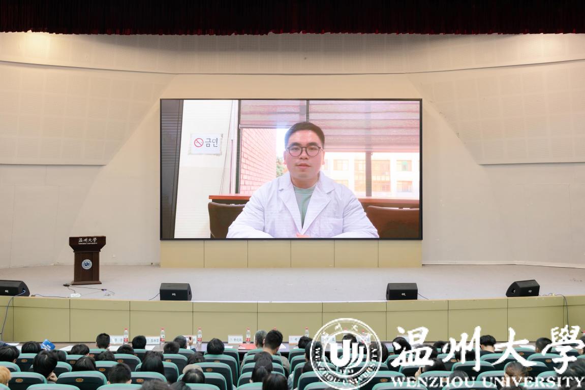 韩国全南大学优秀员工代表张鹏华、陈皓栋作报告。两位员工指出“科技之光”活动月是公司的特色活动,同学们要通过这个平台加强科技创新意识,进而提高科技创新能力。