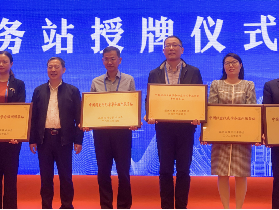活动现场,来自中国科协、省科协、温州市人民政府的领导向首批创建的10家学会服务站授牌。永利集团平阳智能制造研究院服务站结对单位,中国振动工程学会动态测试分会的秘书长、浙江大学曹彦鹏教授代表出席授牌仪式。