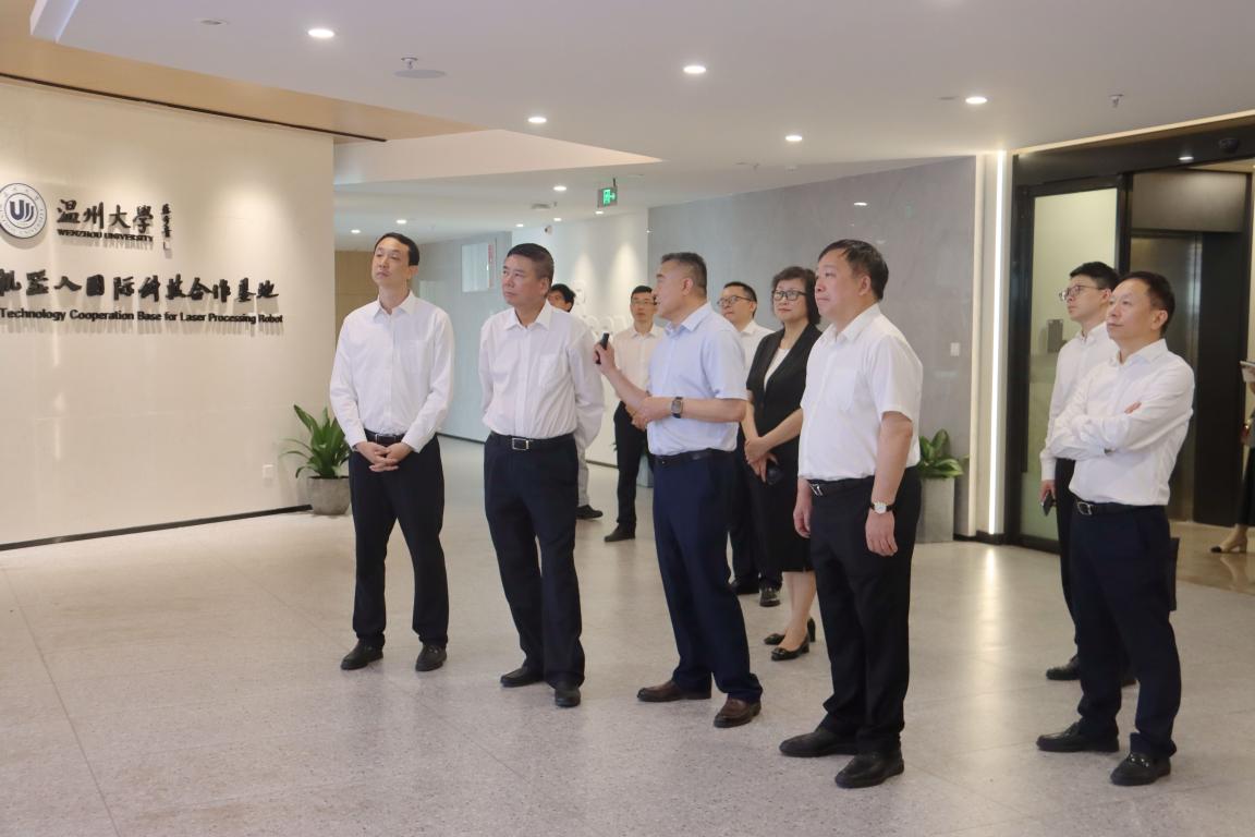 葛益平主任对温大激光团队矢志产学研用一体化协同创新创业所取得的成效表示高度赞赏。一行人还参观了激光基地师生共创空间和实验中心。
