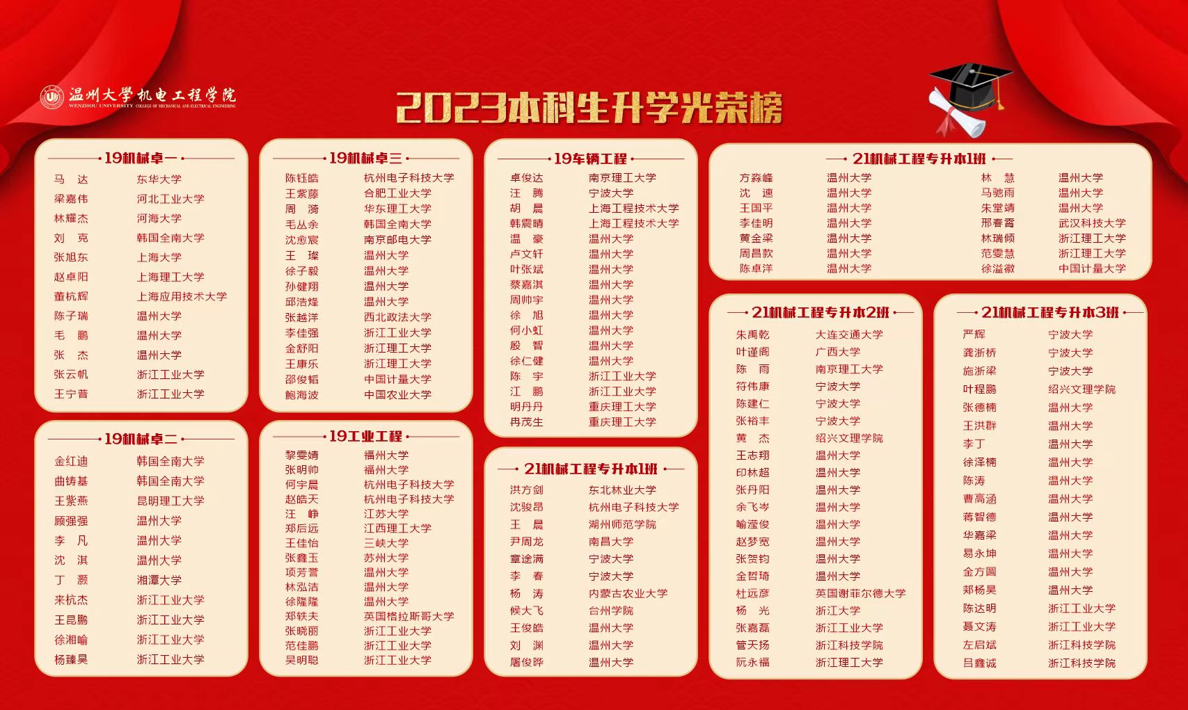 在鲜花盛开的六月,公司学子考研升学捷报频传!截至2023年6月12日,公司2023届本科生升学人数达134人,连续两年考研升学率突破40%。7个毕业班升学率超过35%,其中前三甲分别是21机械工程(专升本)1班(47.17%),19工业工程班(46.88%),19车辆工程班(43.59%)。