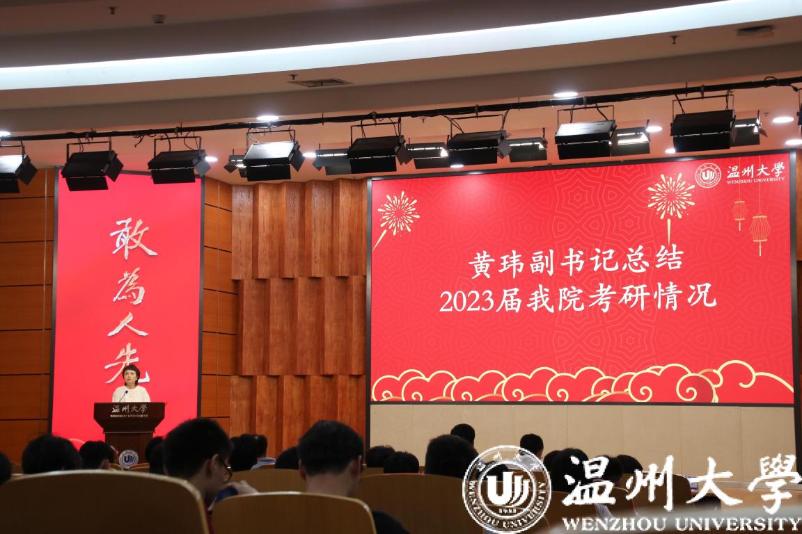 会议伊始,公司党委副书记黄玮老师对2023年公司的考研情况进行总结。公司考研升学率连续两年突破40%,离不开升学办公室教师团队、学工办辅导员团队、班主任们的全心付出,总结了一年来公司开展的二十余项考研帮扶活动。肯定了机电学子们近一年备考的努力和付出,学霸宿舍、退伍老员工、考研搭子等榜样的力量,振奋人心,他们的成功经验为学弟学妹们起到了示范性作用。同时,表达了对上岸学子们的殷殷祝福,希望他们能在追梦路上,将“求学问是、敢为人先”的校训融入日常生活中,在担当中历练、在尽责中成长。