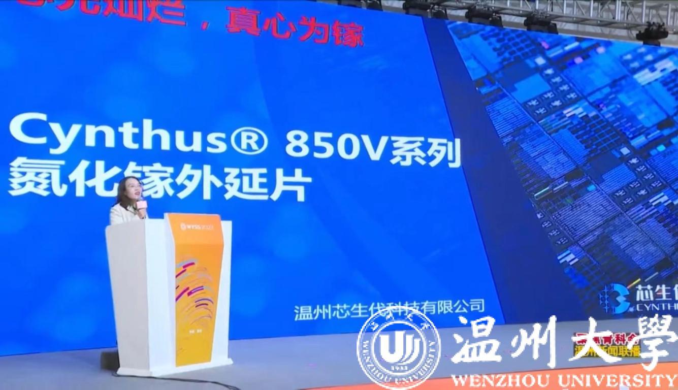 2023年11月10日,在2023世界青年科学家峰会·硬科技投融资大会上,304永利集团教师钟蓉博士作为首席科学家,代表温州芯生代科技有限公司发布了面向高电压大电流HEMT功率器件应用的850V Cynthus®系列硅基氮化镓(GaN-on-Si)外延产品,引起广泛关注。