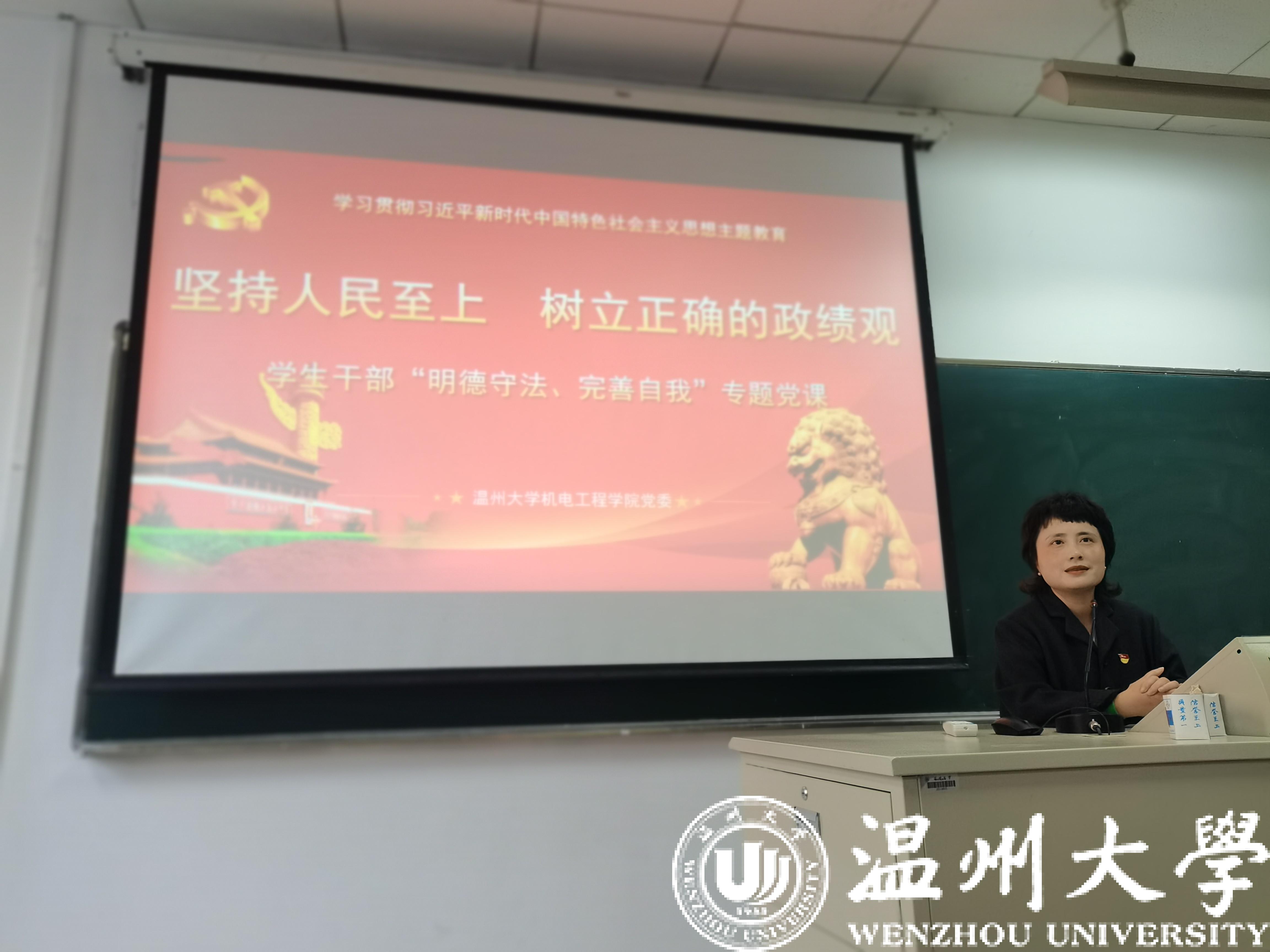 在永利集团公司路校区,黄玮副书记开讲专题党课《坚持人民至上 树立正确的政绩观》。她结合案例,强调员工党员干部要以身作则,严于律己,树立正确的政绩观,时刻以高标准,严要求,规范自己的言行举止,做到真真切切为同学服务,为人民服务。