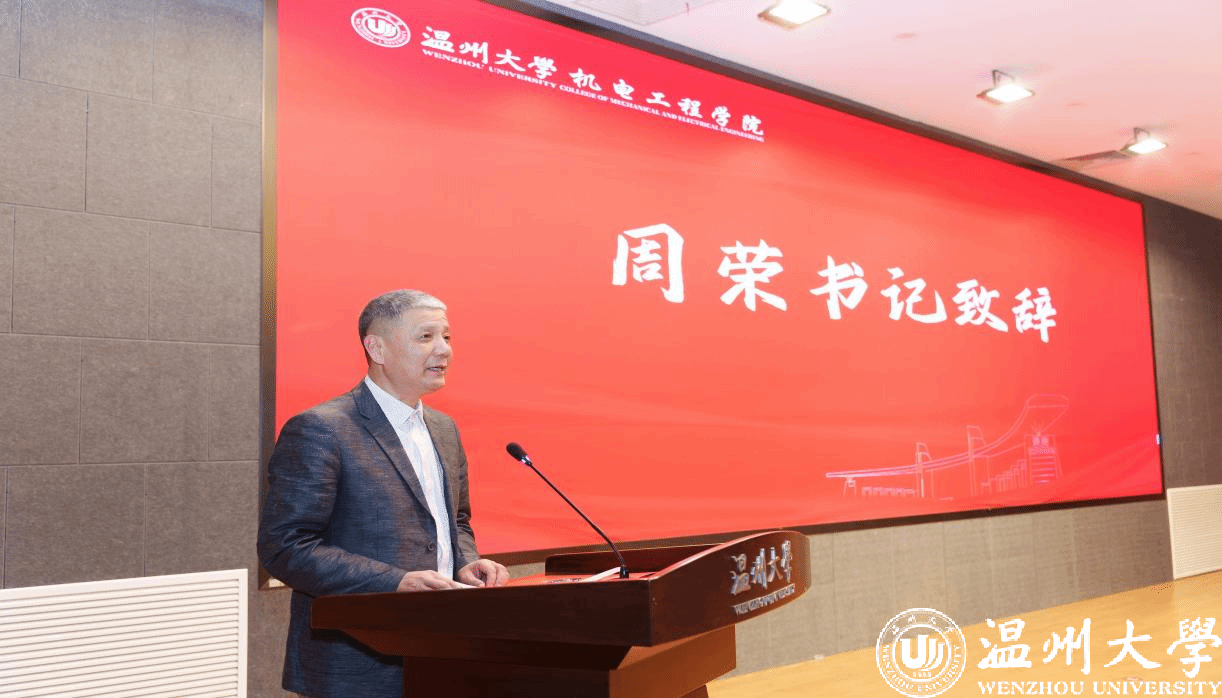 公司党委书记周荣致辞。周书记列举了过去一年中公司学子们在各类国家级、省级学科竞赛、专利申请、论文发表、国家级创新训练项目、浙江省新苗计划等方面取得的优异成绩,同时,他还希望同学们能够在此基础上继续努力,以赛促教、以赛促学、以赛促创,再拓新思路,再上新台阶。