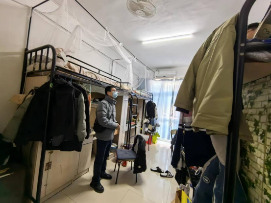 在员工宿舍检查过程中,黄玮副书记和留宿员工亲切交谈。询问员工留校的原因,提醒员工尽快完成时间,提早返乡;对于毕业班的员工,要趁着假期,尽快的找工作;提醒最后一位离开宿舍的同学,要记得关闭水电、关好门窗。对于有问题的员工,也进行了答复和现场处置。