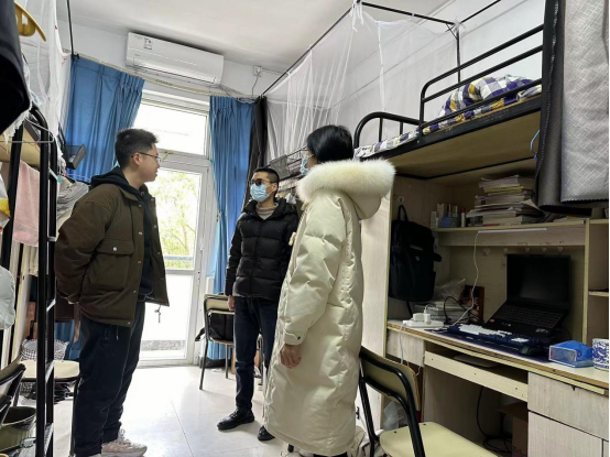 为做好2024寒假留宿员工的安全管理工作,1月24日、25日,机电公司副经理李勇、副书记黄玮带领值班老师、辅导员分别对实验室、留宿员工宿舍进行检查走访,排查安全隐患,积极营造安全和谐的校园环境。