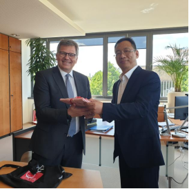 5月8日,倪计民教授拜访了温州友好城市德国吉森市市长Frank-Tilo Becher先生。Becher先生特别希望与温州市加强在各领域的合作,双方就温州市与吉森市在高校间的教育和科研合作、医疗(健康)医药、数字经济、智慧城市领域的技术合作以及工业企业的合作等进行了友好的交流。