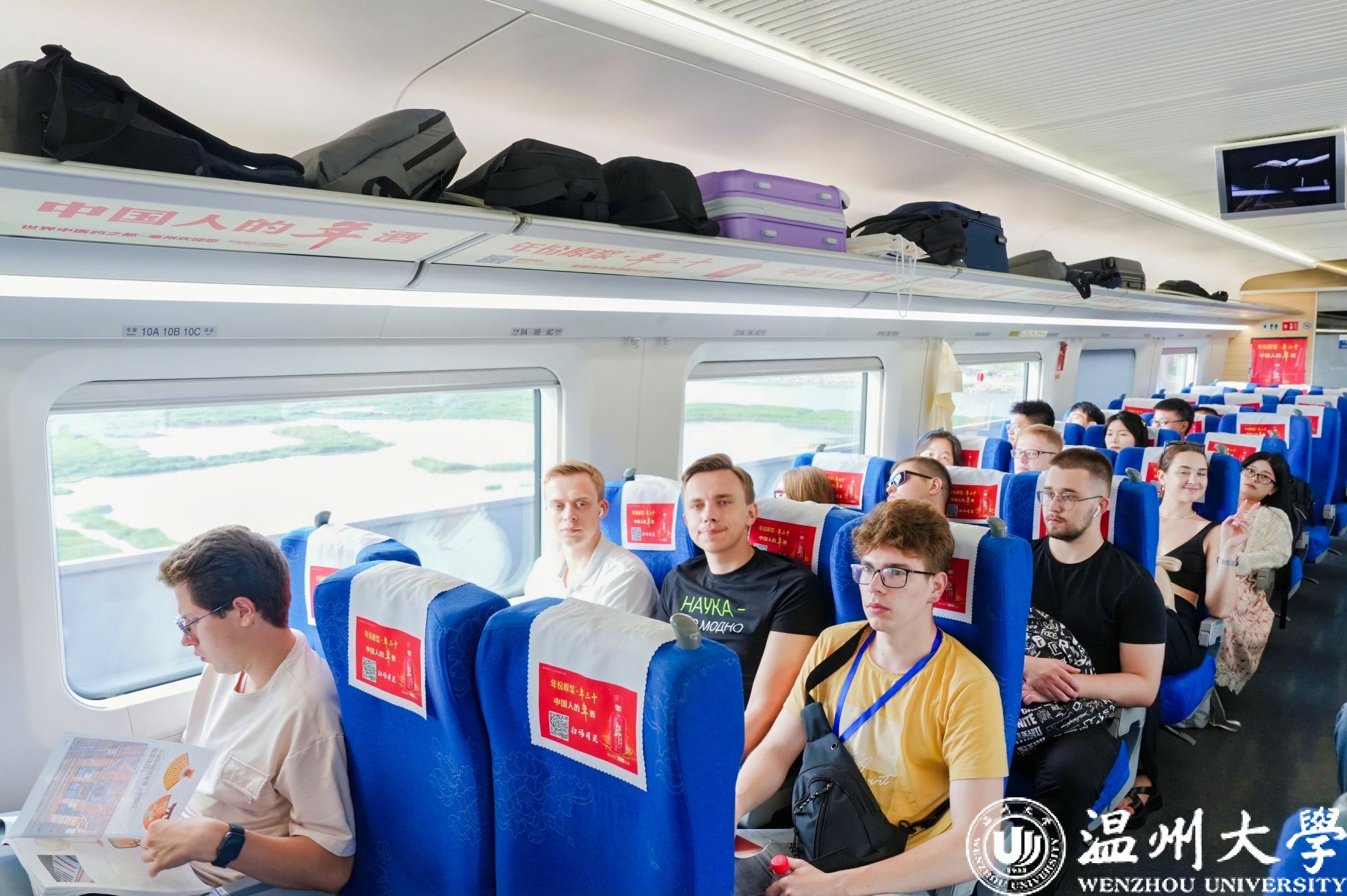 2024年7月5日,俄罗斯伏尔加河沿岸联邦区青年长江行(温州站)活动进入了第五天。清晨,青年代表们从雁荡山乘坐高铁前往杭州。在高速列车上,他们亲身体验到了中国高铁的快捷和舒适。高铁以其高效、平稳的特点,让大家对中国的基础设施建设赞叹不已。