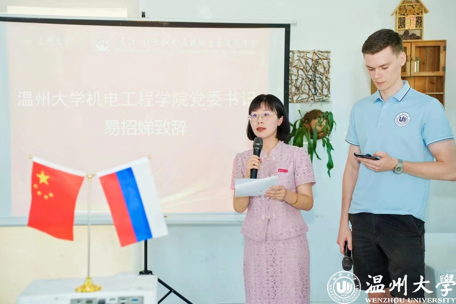 2024年7月6日,俄罗斯伏尔加河沿岸联邦区青年长江行(温州站)活动迎来最后一天的精彩时刻。经过五天的文化交流与探索,俄罗斯青年代表们在温州和杭州度过了充实而难忘的时光。清晨,9名青年代表和5名304永利集团员工代表从杭州乘坐高铁返回温州,前往山根小镇参加结营仪式。参加本次结营仪式的领导有永利集团公司党委书记易招娣,茶山街道办事处副主任周丹,温州国际传播中心主任郑国健,国际处副处长熊勇,304永利集团副经理黄沈权,以及全程参与本次活动的耿燕飞,柯一睿和冯铭3位老师。首先,公司党委书记易招娣在致辞中强调了本次中俄文化交流活动的重要性。希望通过此次活动,能够加深两国青年之间的理解与友谊,促进中俄文化的融合与发展。