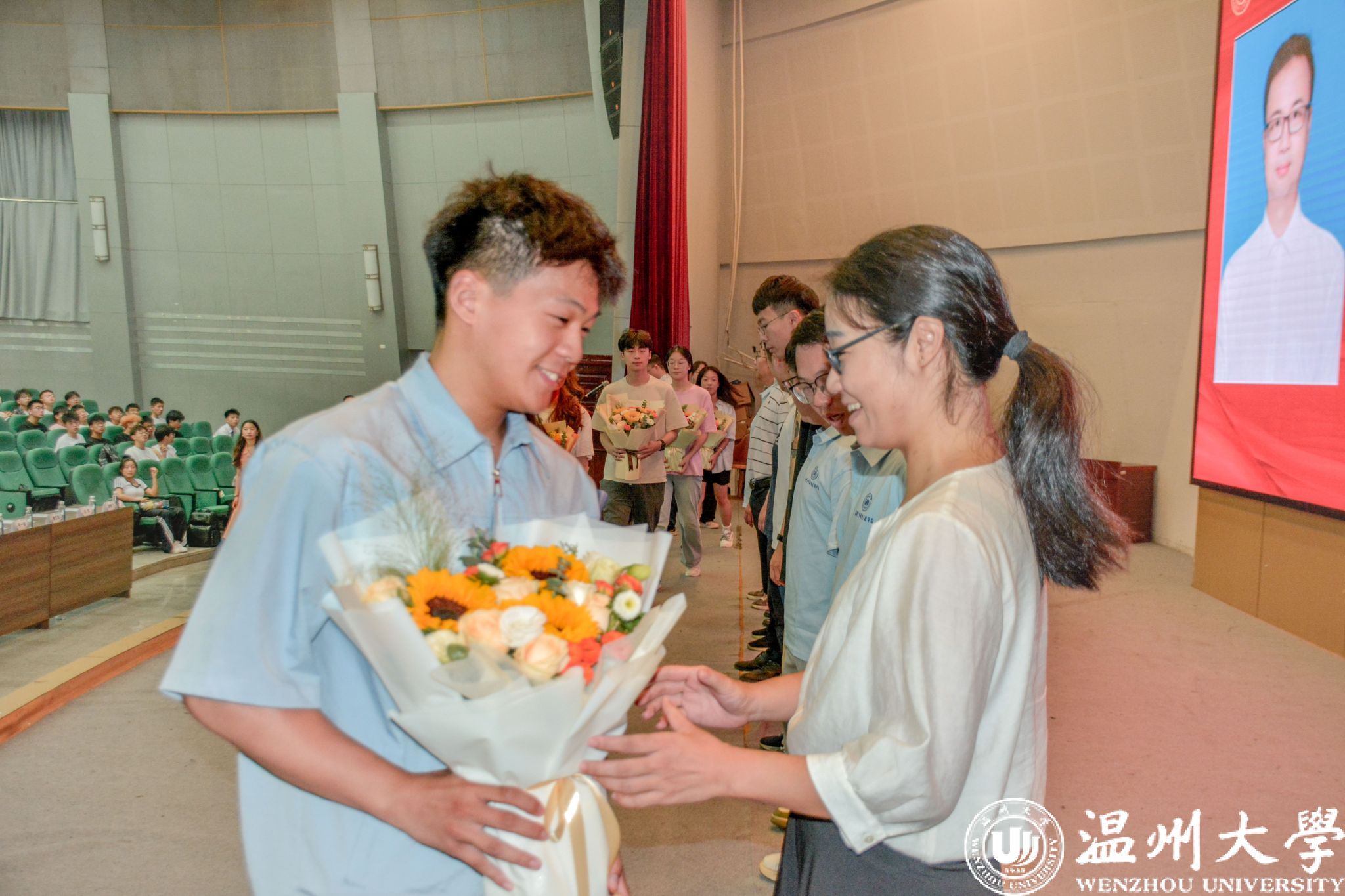 随后,举行2024级新生班主任师生见面会,方建晓副书记依次向新生们介绍了10位优秀的班主任老师,员工代表上台献花。
