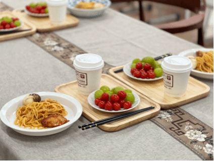 活动现场,温馨的桌布和点缀在之间的鲜花相映成趣,桌上摆满了精美的水果、餐食和饮品。教师代表们陆续到场,一张张笑脸洋溢着节日的喜悦,温馨的教工之家充斥着浓厚的节日气氛。