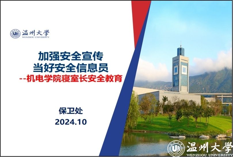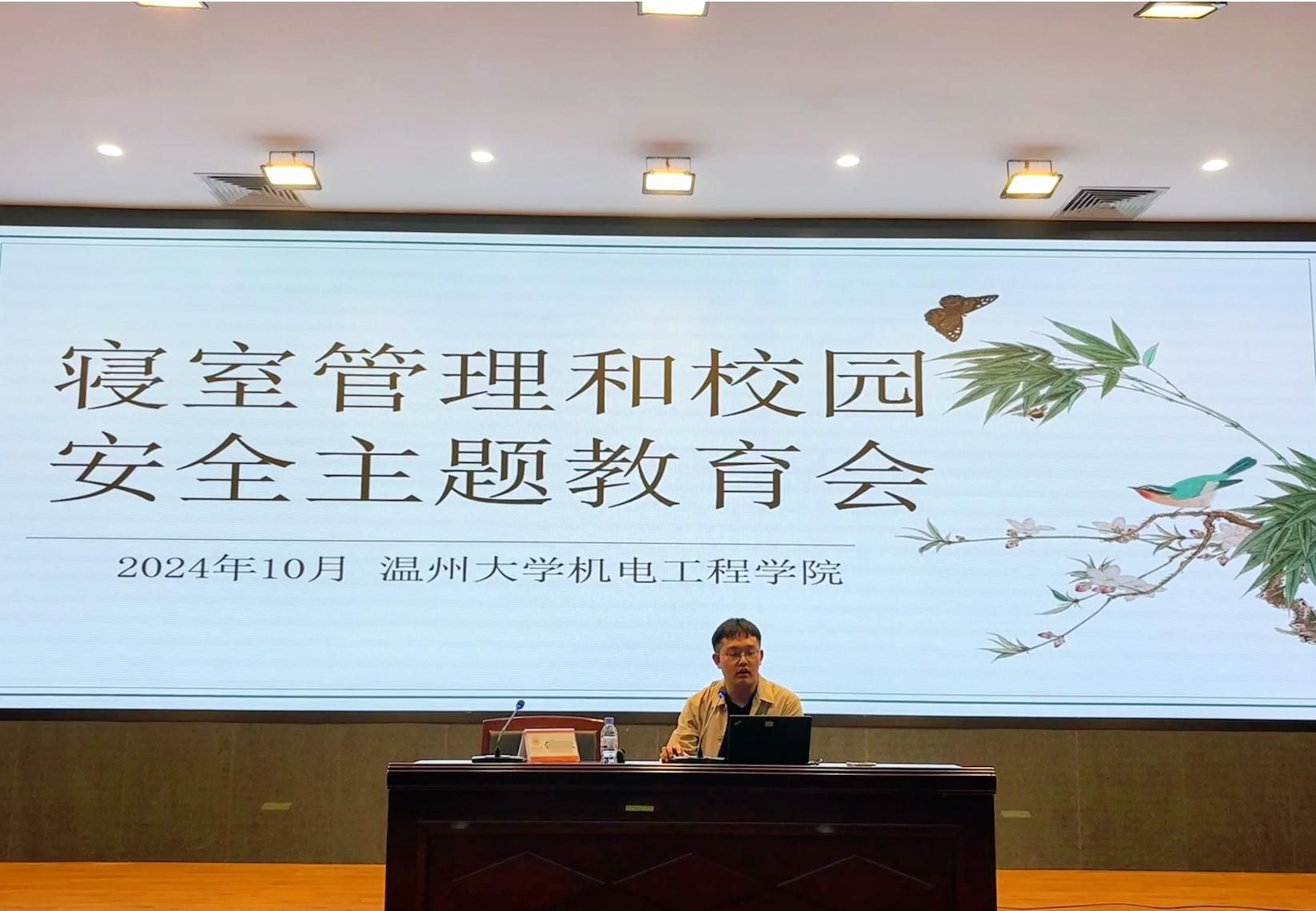 第一项,钱合激老师介绍并强调校园寝室安全工作。首先,介绍了寝室中常见的安全问题,提醒机电学子要关注消防隐患和交通安全,杜绝起火事件发生,保护个人出行与身体安全。其次,介绍寝室长的工作职责、强调寝室长要怀有三大安全理念和五大安全能力,密切关注寝室潜在的隐患,起到寝室成员之间良好的沟通职能,履行好寝室长的职责。然后,介绍公司5A校园创建工作进展,引导员工树立安全常识,增强全体员工安全感,为争创5A校园贡献机电学子力量。最后,提出几点注意事项,加深员工认识,呼吁大家关注自己平安、关注寝室平安、关注校园平安。