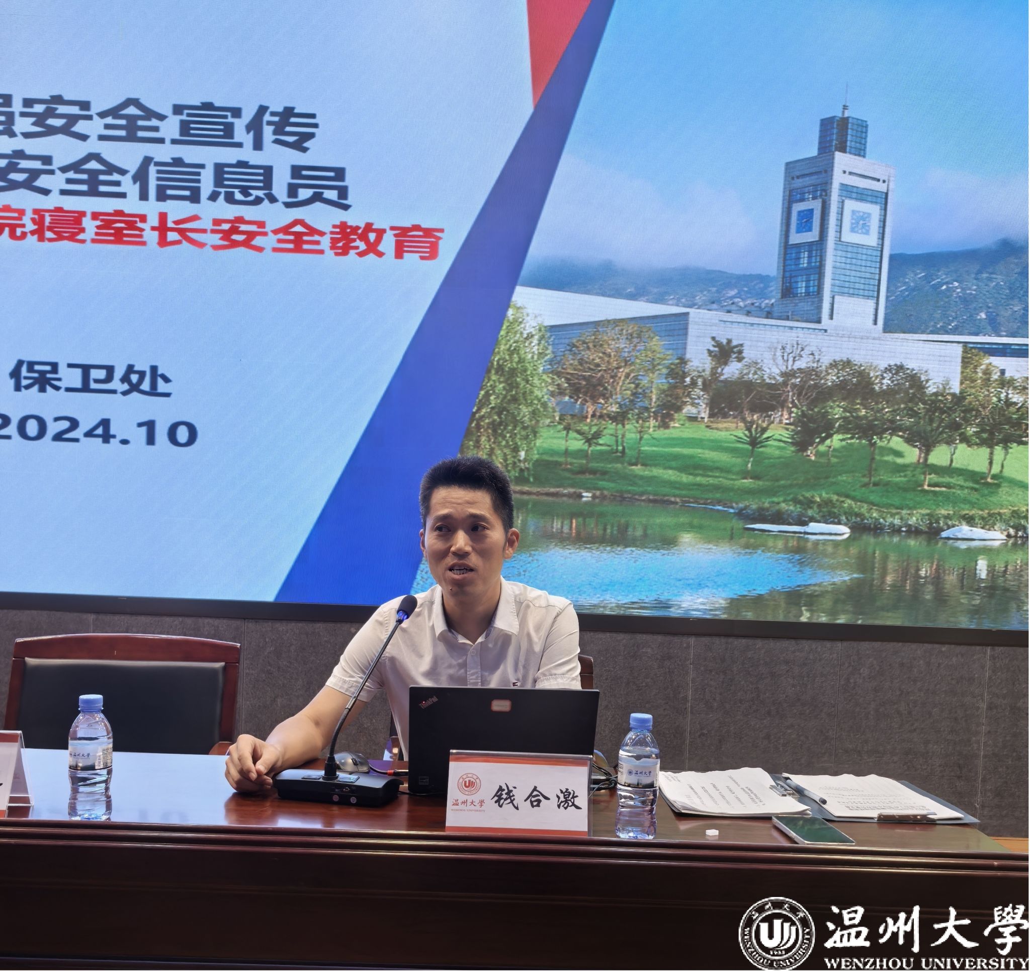 第二项,方建晓老师分享员工安全工作经验。首先,建议大家要将寝室当成自己家,处理好同学之间关系,珍惜寝室室友间友谊,做有格局的寝室长。其次,肯定今晚同学现场认真听讲的精气神,也提醒大家增强非判断力,避免网络负面新闻与恶意造谣行为。最后,告诫各位同学将校园安全放在第一位的同时,也要注重专业学习、保证个人在温大的成长。