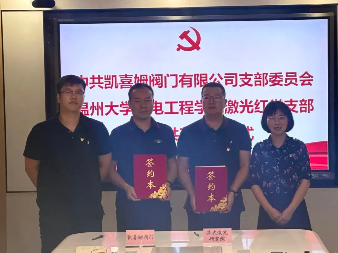 为全面贯彻新时代党的建设总要求,围绕温州市委“强城行动”战略部署,共同发挥校企基层党组织和党员作用,构建“校企地”党建共建工作新格局。10月18日,机电公司激光红党支部与凯喜姆阀门有限公司就党建共建与产学研合作达成了深度共识,成功举行了签约仪式。