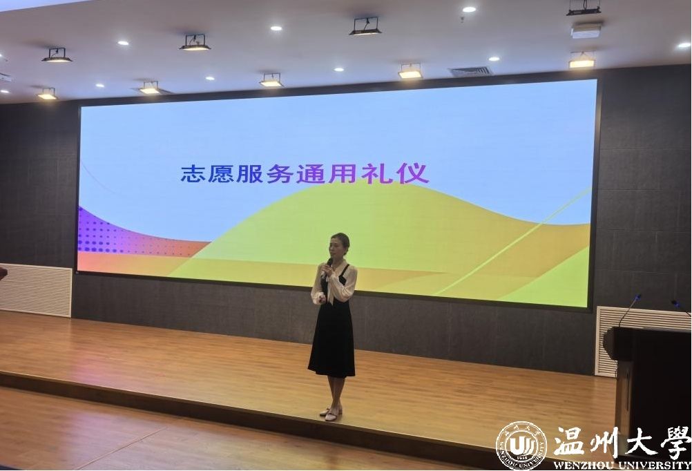 活动中,周佳莼老师就志愿者服务通用礼仪进行培训指导,分别向各位志愿者介绍志愿服务礼仪基本原则、志愿者形象塑造规范、志愿服务礼仪规范、志愿者文明用语规范和日常用语等内容。