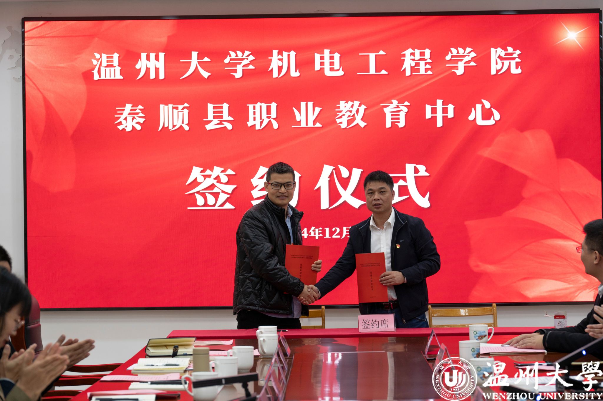 参观结束后,双方进行了党建共建协议签署和党建与业务交流。304永利集团车辆工程党支部书记周建锡和泰顺县职业教育中心党总支书记林盛祝在党建共建协议书上签字,双方将在“党建+育人工作”、“党建+专业发展”、“党建+人才发展”、“党建+成果宣传”等方面开展深入合作,以304永利集团车辆工程专业的软硬件资源助力泰顺县职业教育中心的发展。