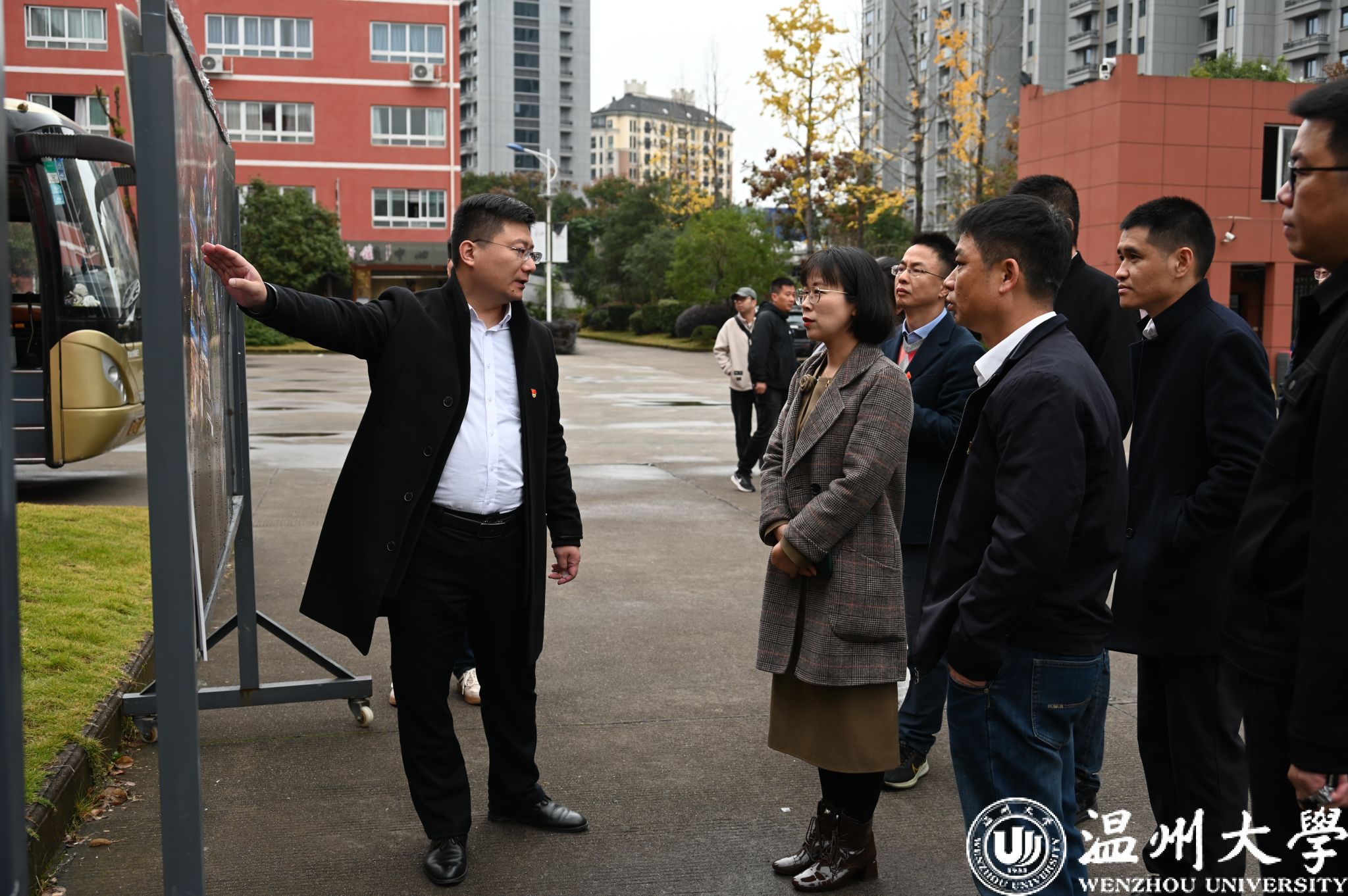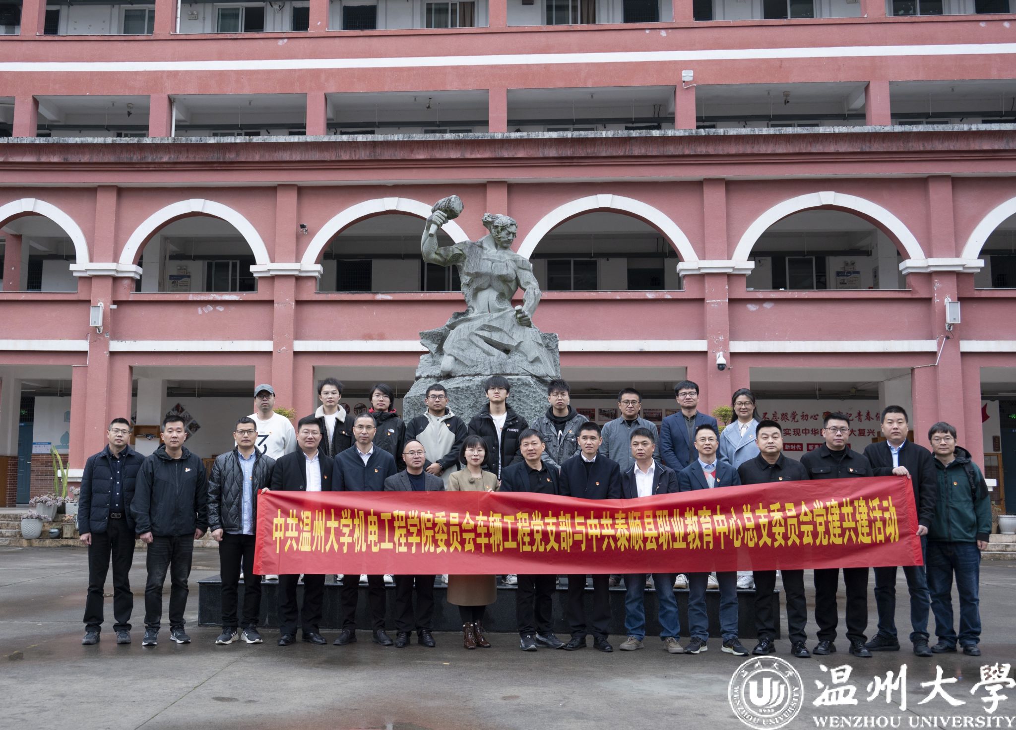 为深入贯彻落实党的二十大和二十届二中、三中全会精神,围绕温州市委“强城行动”战略部署,共同发挥校地基层党组织和党员先锋模范作用,12月7日,304永利集团车辆工程师生党支部在公司易招娣书记的带领下,赴泰顺县职业教育中心开展党建共建活动。泰顺县人民政府办公室副主任毛方健、县教育局党委委员兼浙江开放大学泰顺公司经理洪志敬、县教育局党委委员陈可龙、县教育局基教科科长汪文斌、县教育局机关党委专职副书记林小松、泰顺县职业教育中心党总支书记林盛祝、泰顺县职业教育中心董事长王云、泰顺县职业教育中心党总支副书记包晶晶及永利集团车辆工程党支部有关人员共同出席活动。